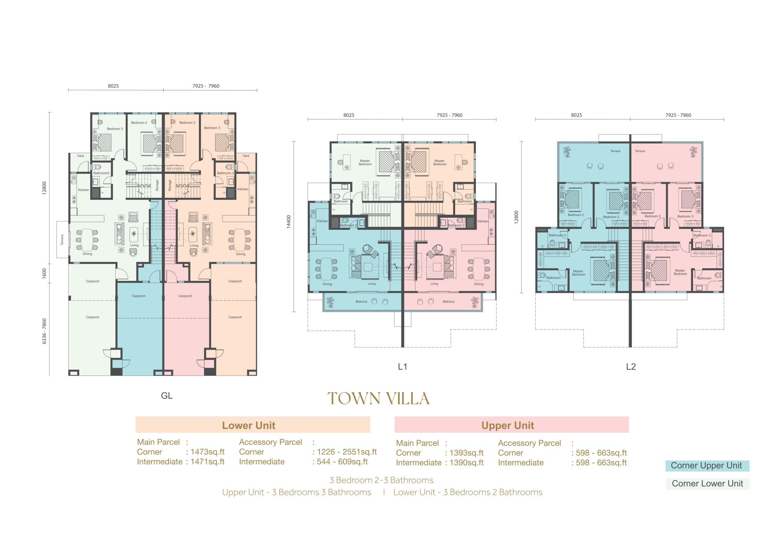 1,390 – 1,473 sqft [3 Bedrooms | 2 – 3 Bathrooms]